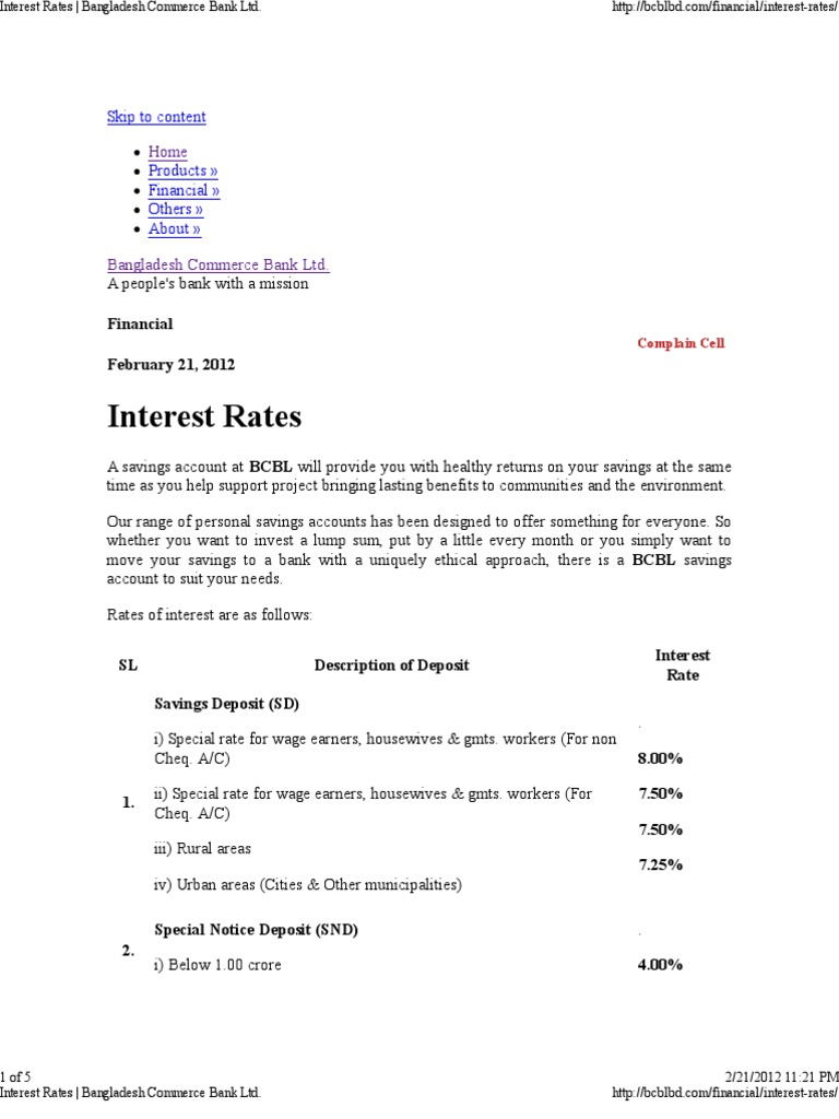Interest Rates Bangladesh Commerce Bank Ltd Loans Interest