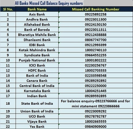 Missed Call Balance Checking Number Of Major Indian Banks