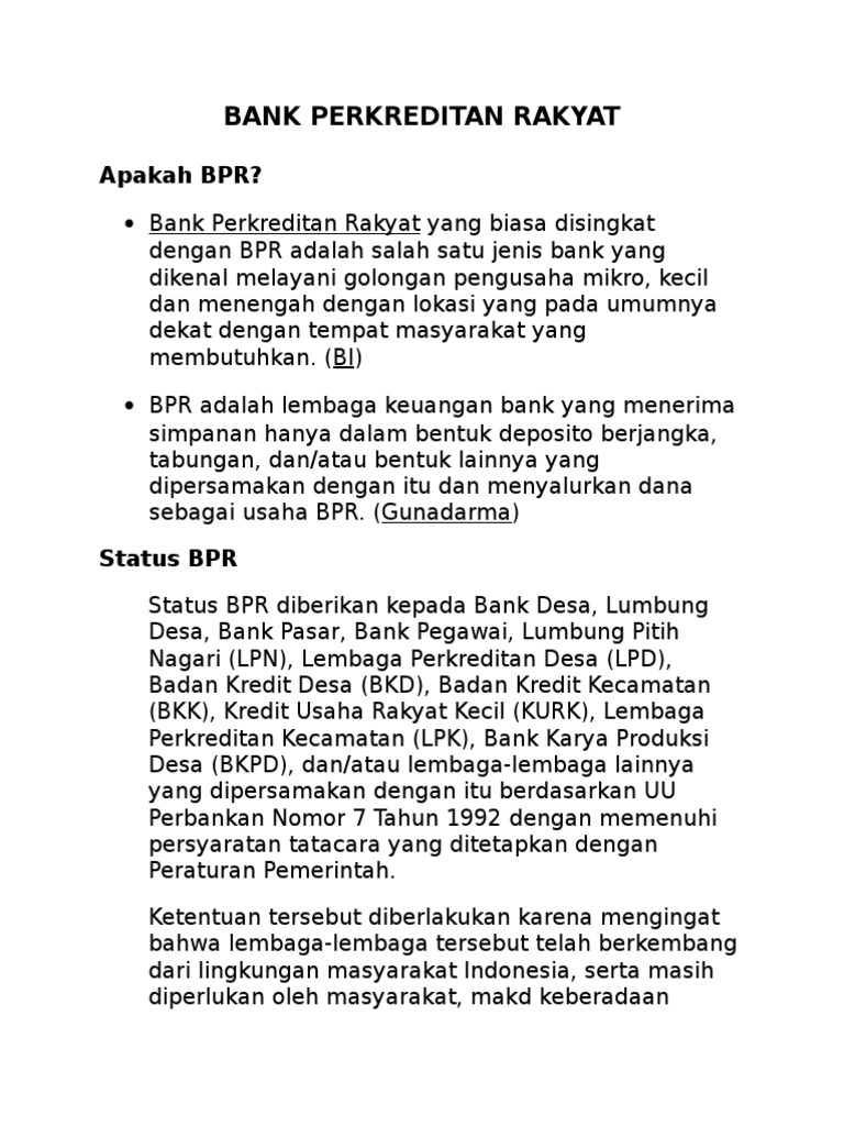 Yuk Mengenal Bank Perkreditan Rakyat Bpr