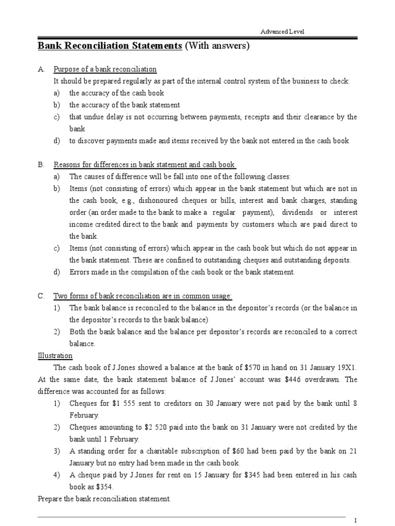 Bank Reconciliation Exercises And Answers Free Downloads