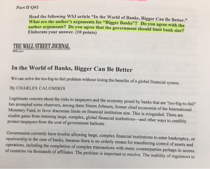 Solved Part Ii Q 2 Ead The Following Wsj Article In The