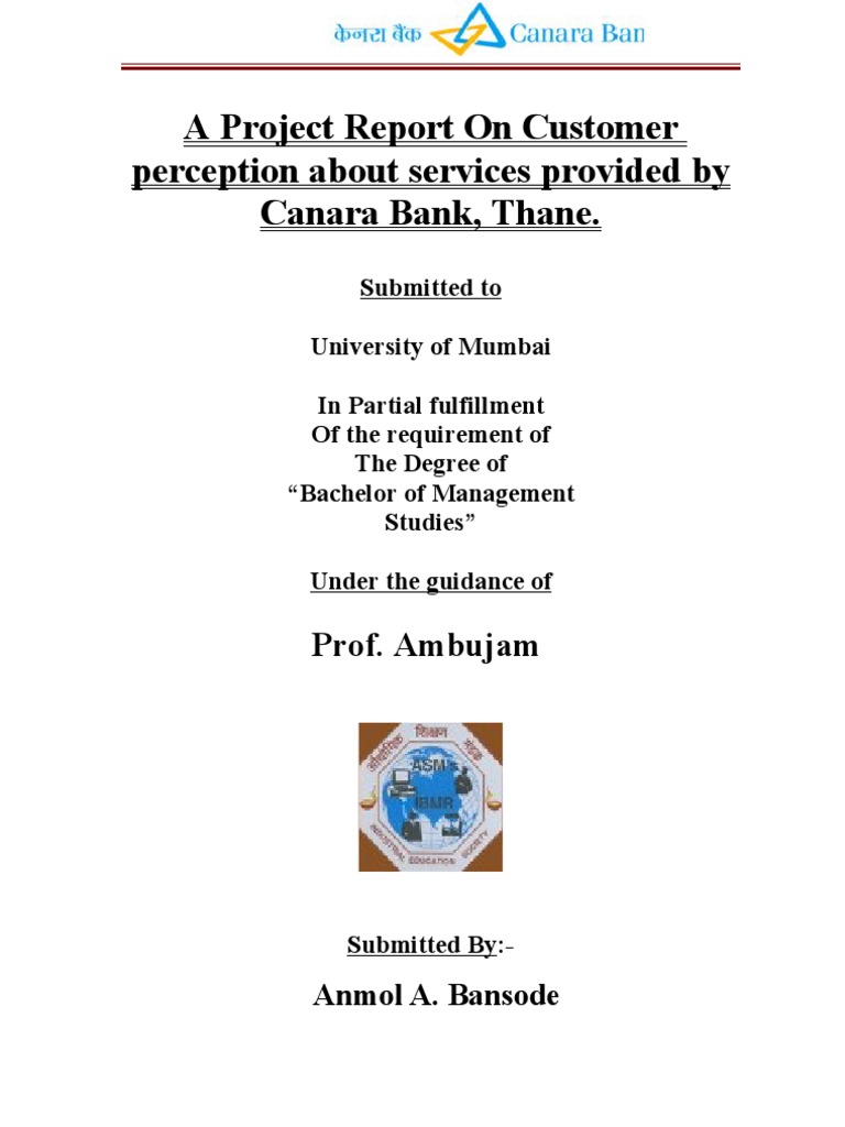 Customer Perception About Product Services Of Canara Bank