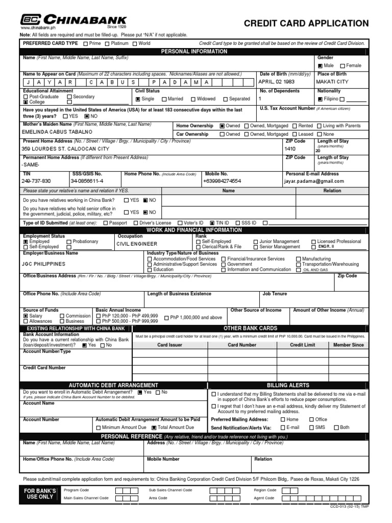 Credit Card Application With Supplementary Tmp Saveable Pdf