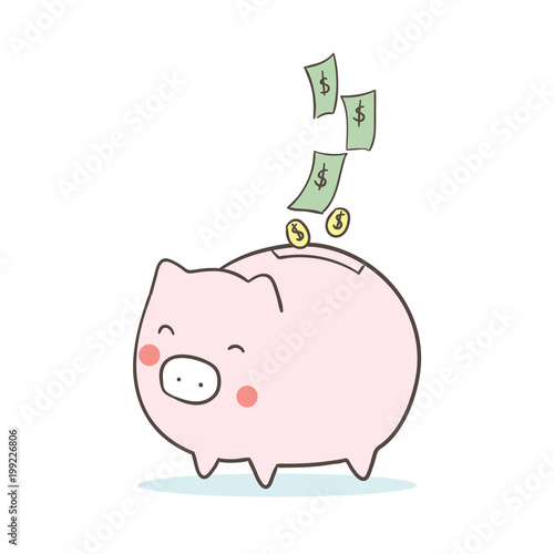 Cute Draw Vector Illustration Of Pink Pig For Saving Money Doodle