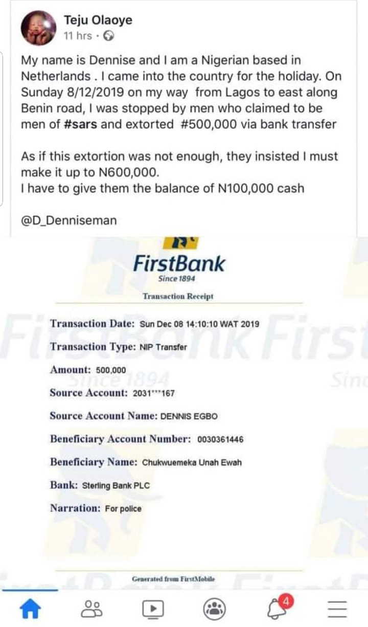 How Sars Obtained 600 Thousand Naira From Nigeria Who Just