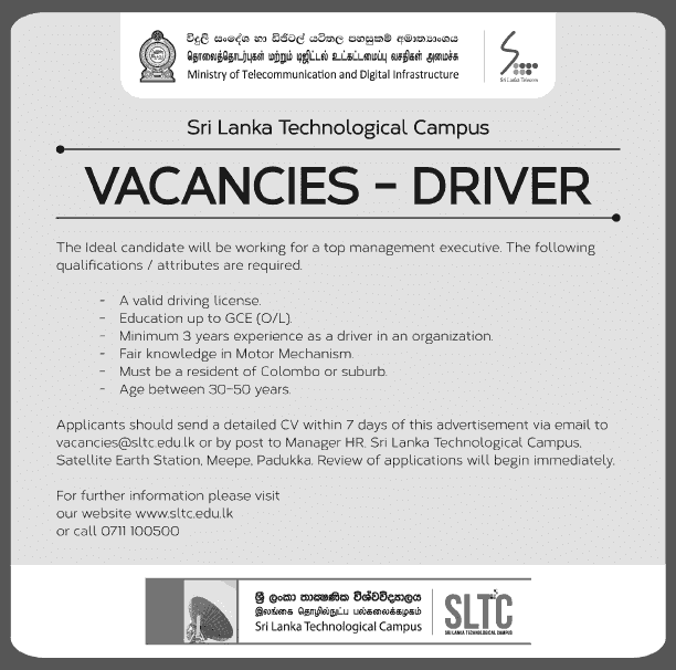 Vacancies Driver Sri Lanka Technological Campus Derana Jobs