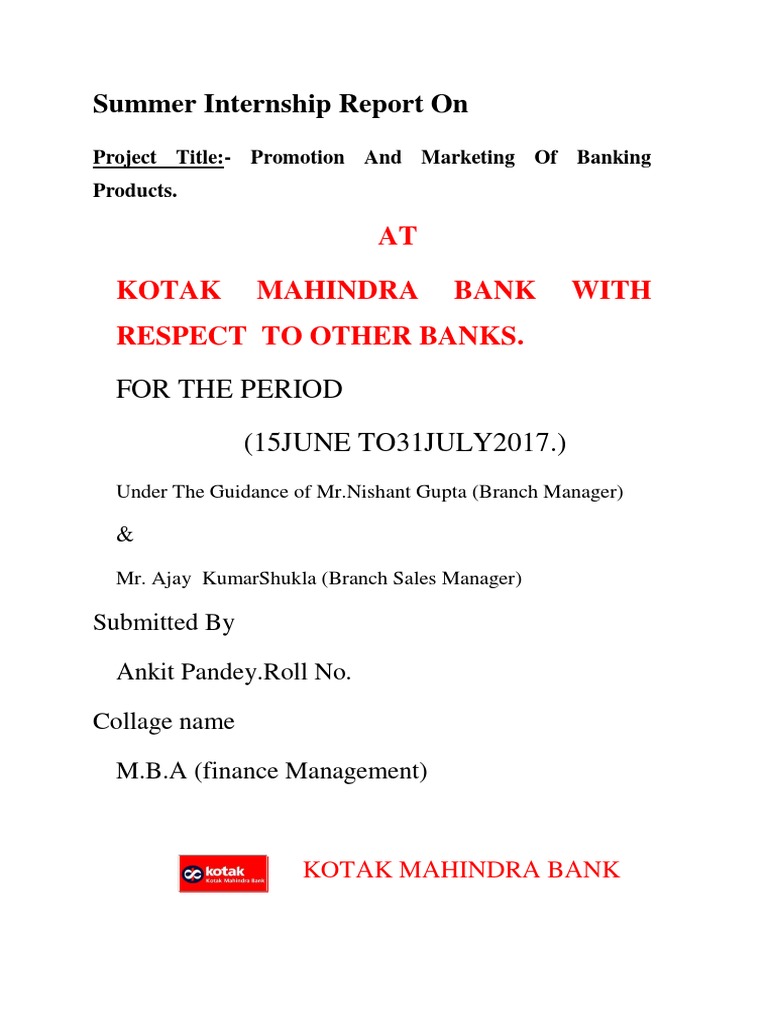 Summer Internship Report On At Kotak Mahindra Bank With Respect