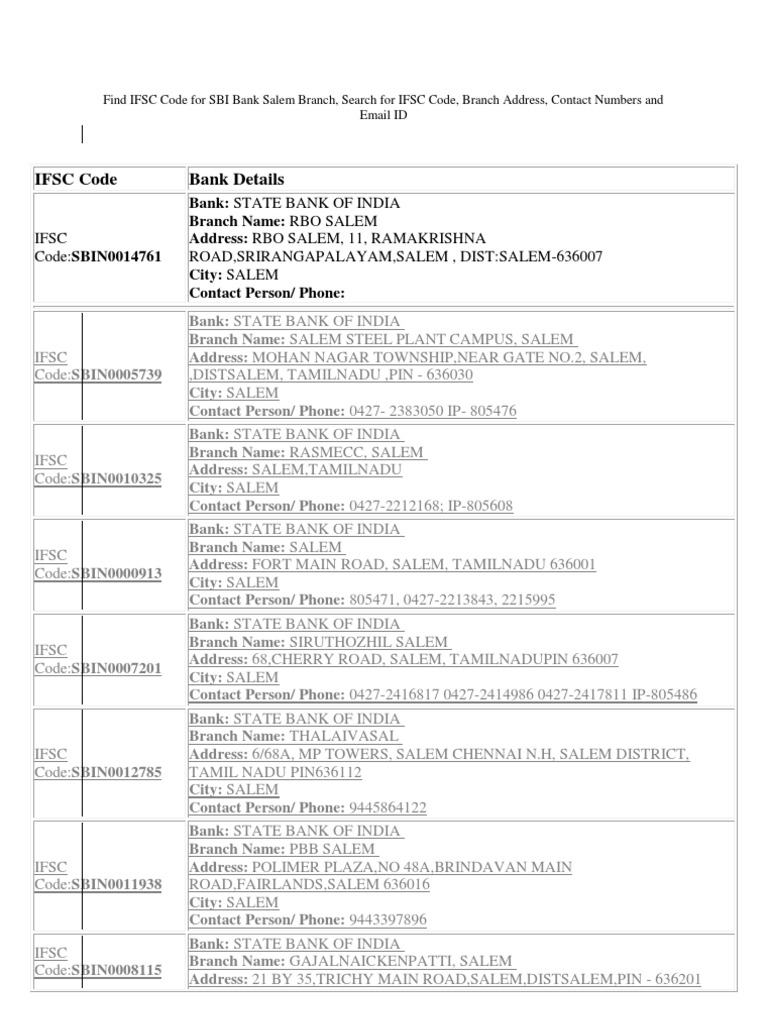 Sbi Ifsc Code State Bank Of India Micr Code Branch Addresses