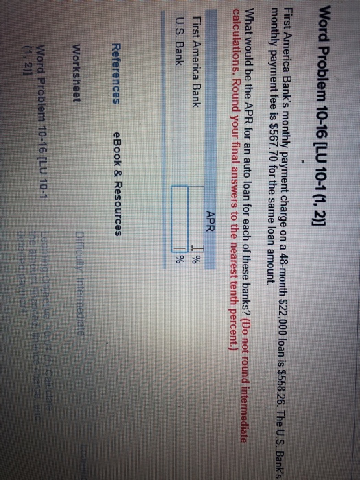 Solved Word Problem 10 16 Lu 10 1 1 2 First America