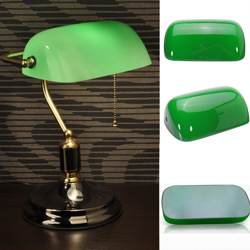 Vintage Green Glass Desk Banker Lamp Shade Cover Cased Replacement