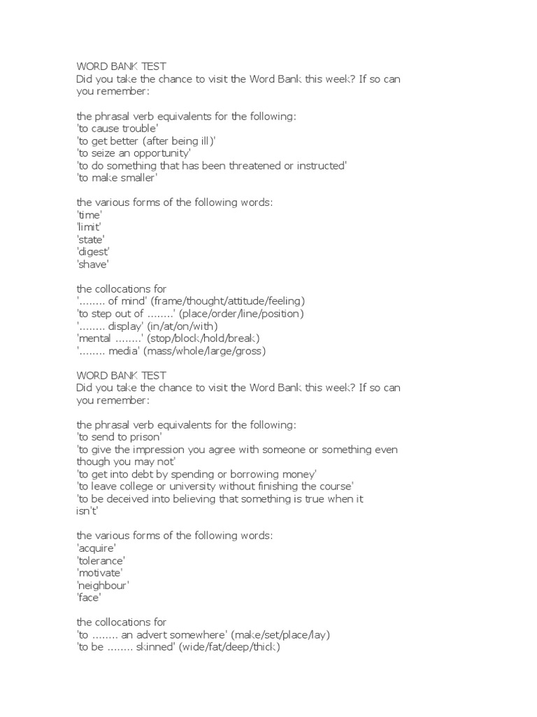 Word Bank Test